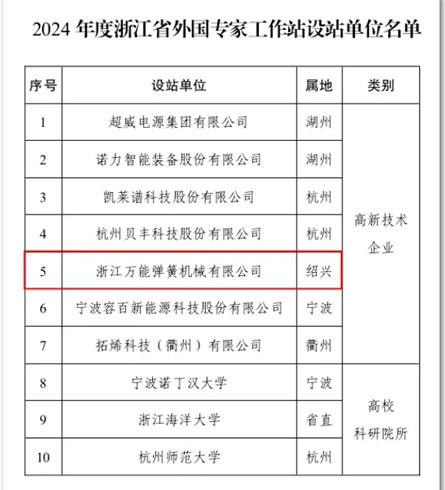 在全球化與科技創新的驅動下,浙江省外國專家工作站成為吸引國際高端人才、推動企業創新發展的重要平臺。自2020年《浙江省外國專家工作站管理辦法》實施以來,紹興市在吸引外籍專家方面取得了顯著成績。截至目前,紹興市已有6家單位獲批為省級外國專家工作站,位居全省前列。 2024年,浙江萬能彈簧機械有限公司榮...